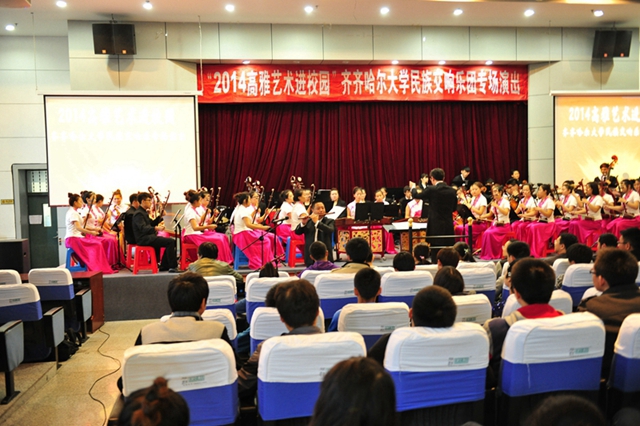 齊齊哈爾大學(xué)民族交響樂(lè)團(tuán)赴哈爾濱五所高校傳播高雅藝術(shù)圖集:/Article/ShowArticle.asp?ArticleID=39226