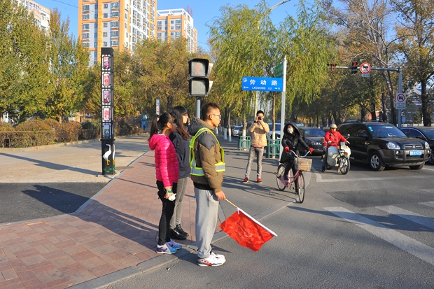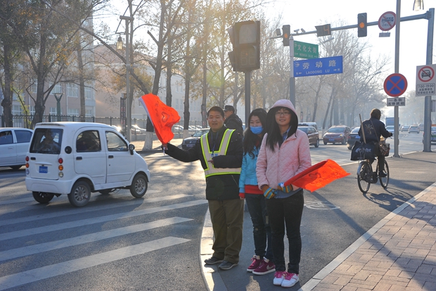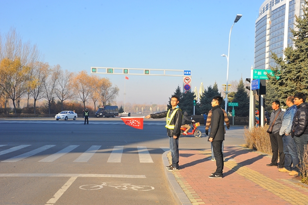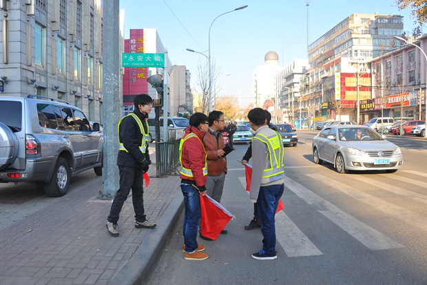 我校是該活動的成員單位之一,負(fù)責(zé)組織青年志愿者在包括市政府六號樓門前交通崗、中區(qū)主樓附近交通崗、中環(huán)建設(shè)銀行交通崗等在內(nèi)的多處重要路口開展交通文明勸導(dǎo)活動。