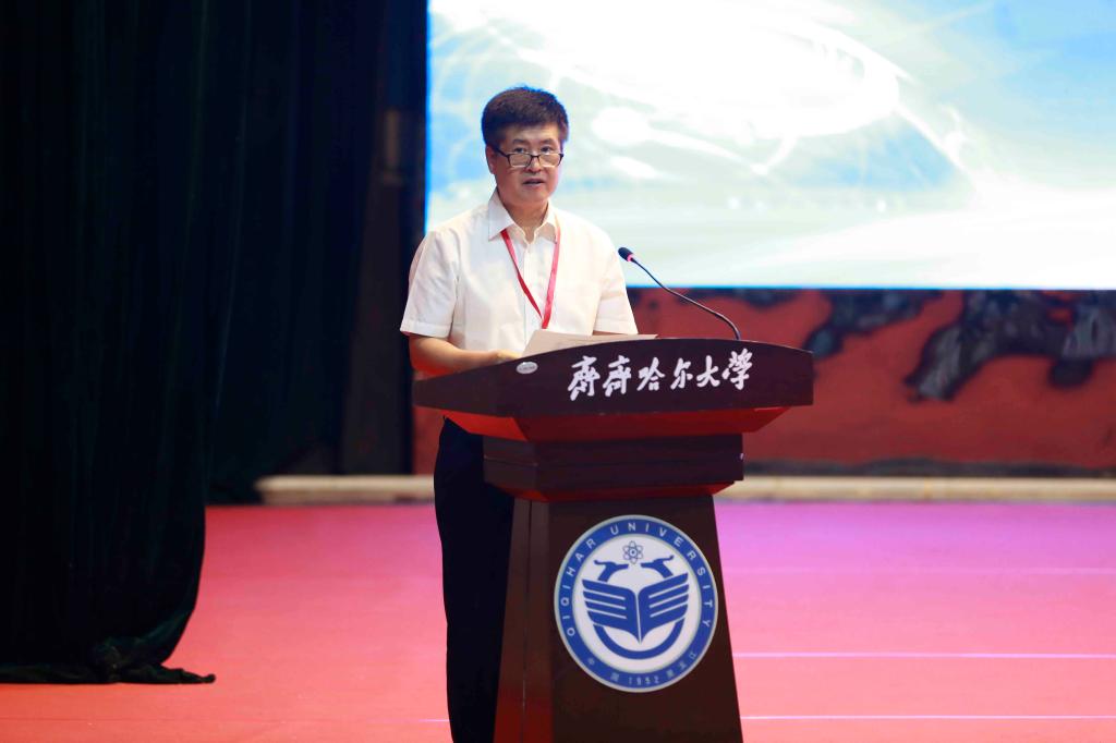 李奇楠在致辭中代表我校對來自東北三省的各參賽隊(duì)員表示熱烈歡迎,并介紹了齊齊哈爾大學(xué)、齊齊哈爾大學(xué)化學(xué)與化學(xué)工程學(xué)院的整體情況和近幾年在教學(xué)方面取得的成果,闡述了本次大賽的重要意義。他指出,希望與會教師不斷提高化工類本科生的實(shí)踐能力、培養(yǎng)學(xué)生的創(chuàng)新思維和團(tuán)隊(duì)協(xié)作精神,力爭做到“學(xué)思用貫通、知信行統(tǒng)一”。