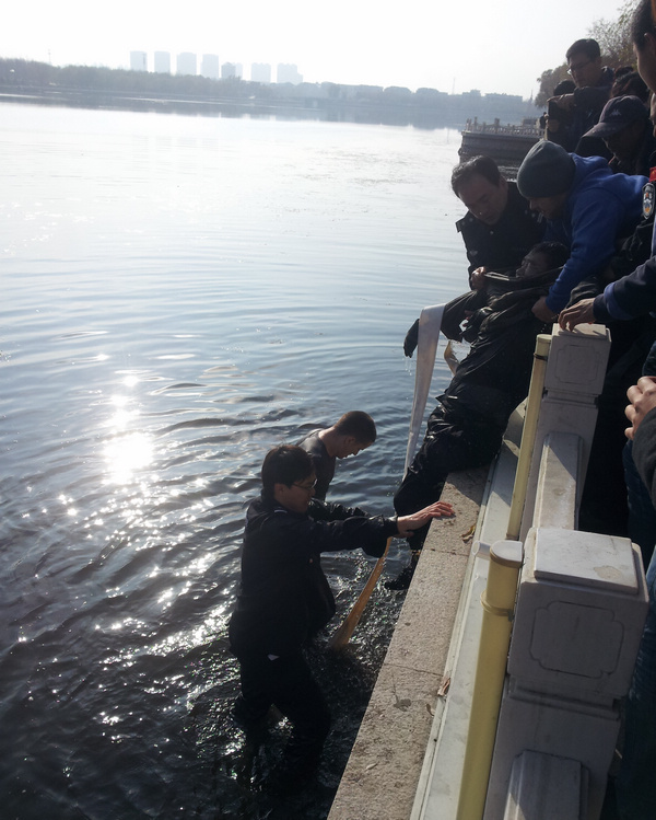 10月25日中午13時左右,一名50歲左右喝了很多酒的男子不明原因突然落水,掉入我校德潤大廈樓前的勞動湖中。深秋時節(jié),湖水很涼,水也比較深,該男子掙扎了一段時間無法自救,漸漸向湖中心漂去,并且意識開始喪失。