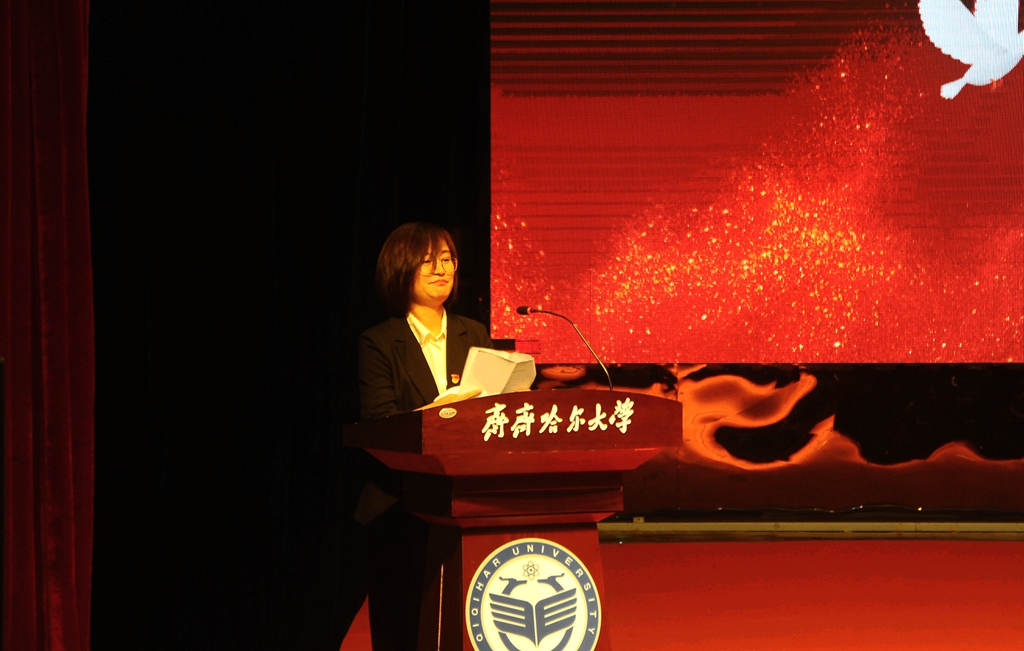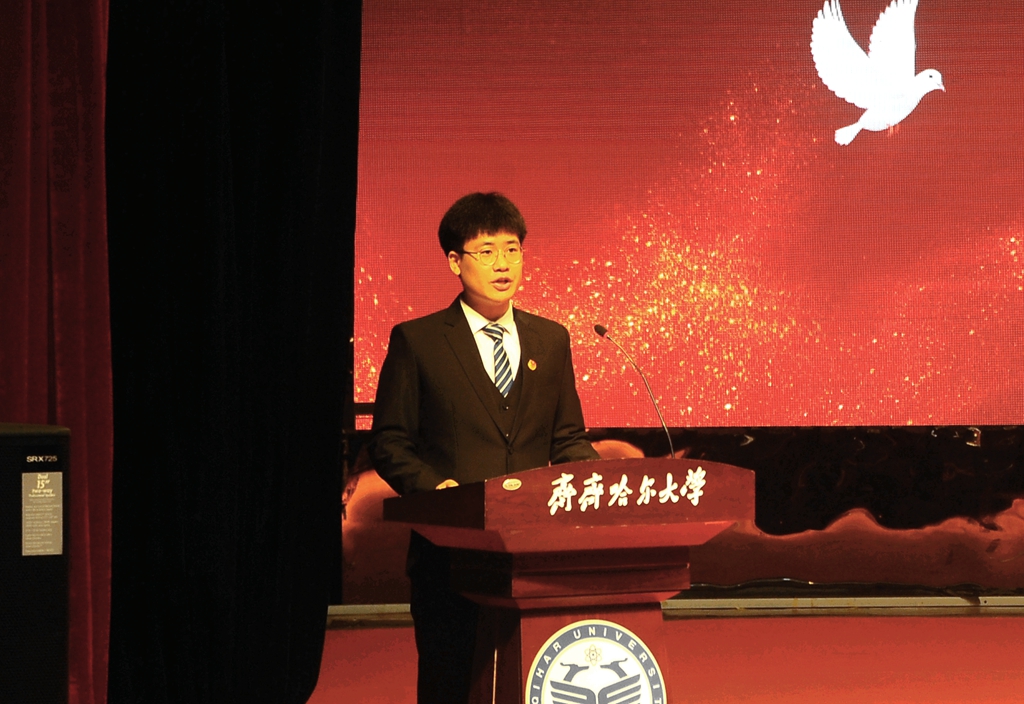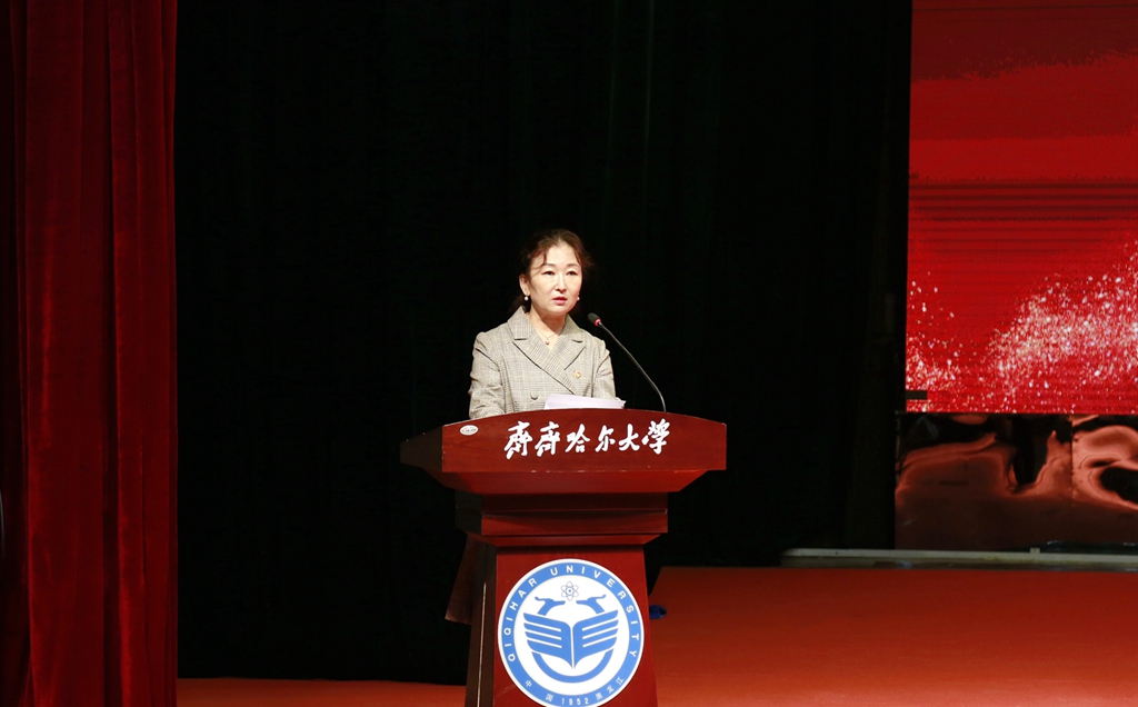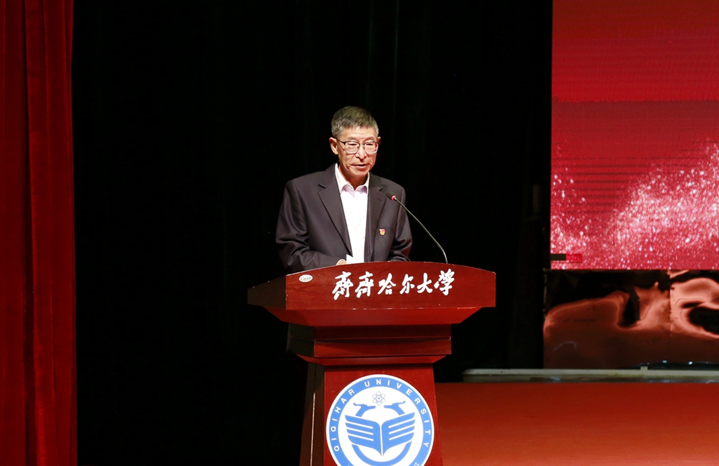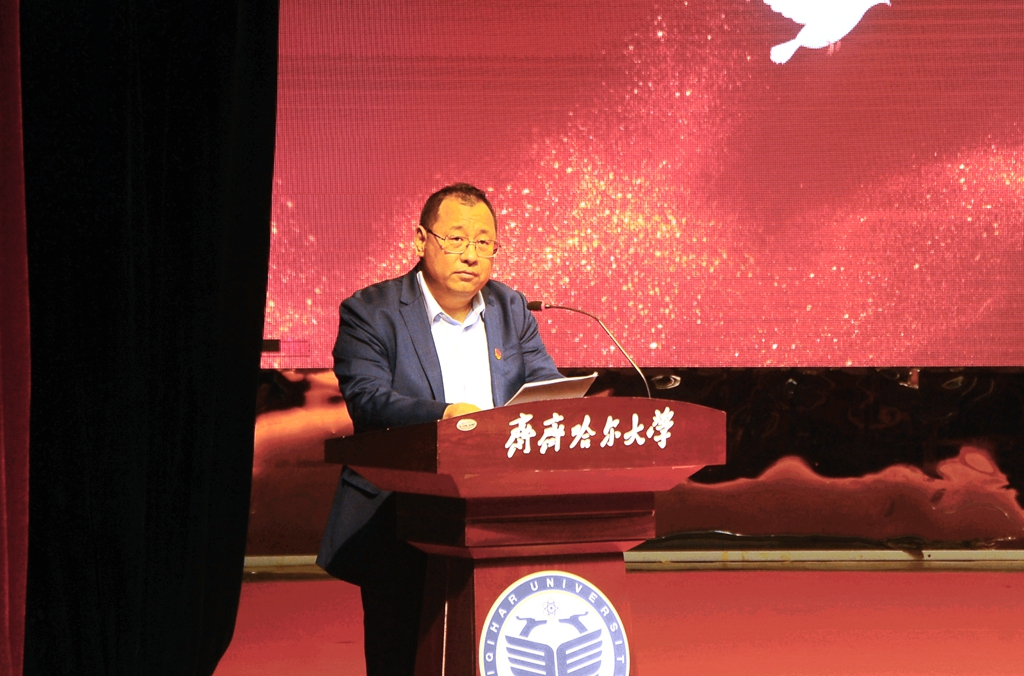 校黨委副書記齊宏偉宣讀學(xué)?!蛾P(guān)于表彰第七批從事教育工作30年人員的決定》和《關(guān)于公布第二批齊齊哈爾大學(xué)黃大年式教師團隊的通知》