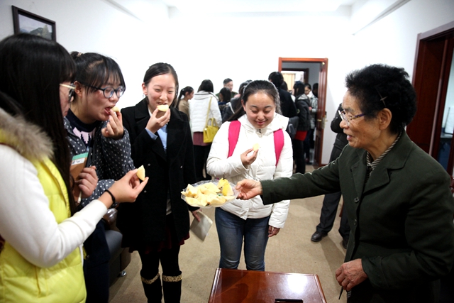 李敏同志撰寫的《李敏回憶錄》被文學與歷史文化學院的師生廣泛閱讀。師生們對老人獨特的抗戰(zhàn)經(jīng)歷、91歲高齡依然矢志不渝地為傳播和弘揚抗聯(lián)精神而奮斗的精神和行動所感動。一個多小時的采訪和交流中,李敏同志向師生們講述了當年與戰(zhàn)友們抗日救國在槍林彈雨中歷練成長的革命故事以及終生不渝的愛國主義情懷。講到動情處,李敏同志還情不自禁地唱起了《露營之歌》等抗日歌曲。老人說的最多的話就是“那個時候太苦了,太難了!今天,我和娃娃們座談,就是想讓你們明白:勝利的成果是多么的來之不易,今天的幸福生活應該好好珍惜,偉大的抗日精神要傳承下去!”