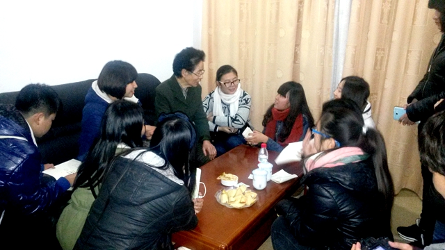 2014年11月4日19:20,在齊齊哈爾大學培訓中心628室,文學與歷史文化學院副院長肖國棟帶領歷史學專業(yè)、戲劇影視文學專業(yè)的8名師生對抗聯(lián)老戰(zhàn)士、原黑龍江省政協(xié)副主席李敏進行了采訪。