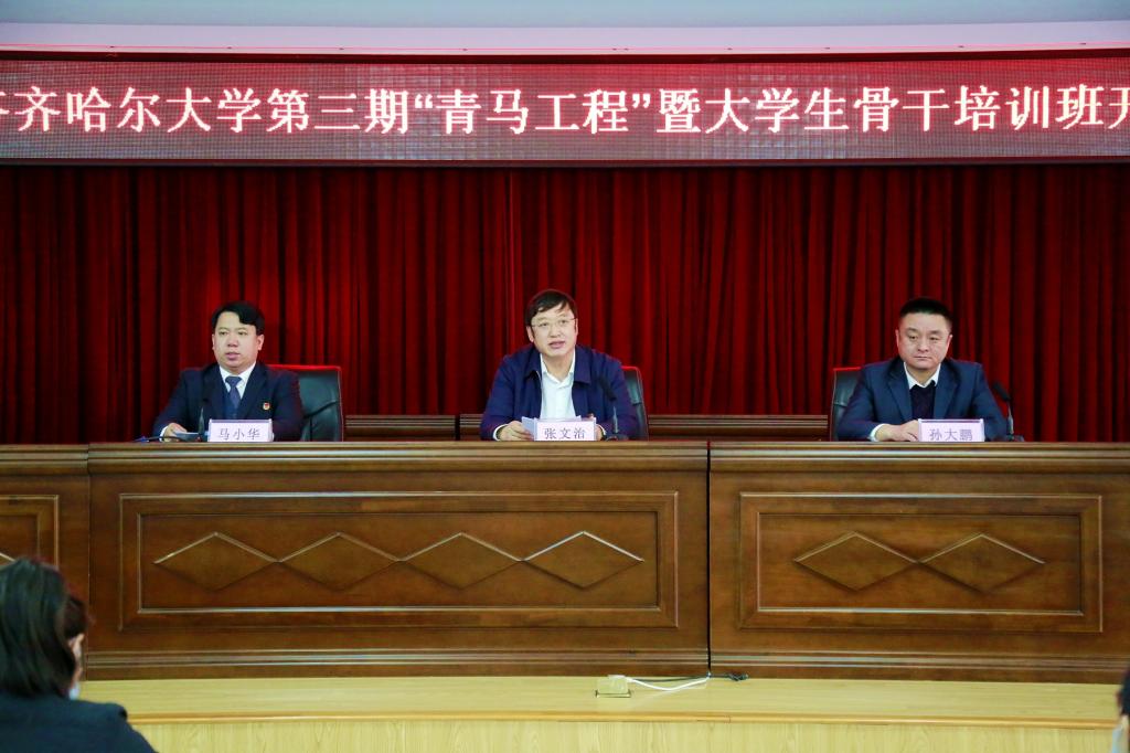 永遠跟黨走,砥礪新征程。10月20日下午,學校在求實樓五樓會議室舉行第三期“青馬工程”暨大學生骨干培訓班開班式。校黨委副書記張文治出席開班式,校學生工作部(處)部(處)長孫大鵬、校團委副書記計紅、各學院(研究生部)團委書記、團委副書記、本期培訓班全體學員參加了開班式,開班式由校團委副書記馬小華主持。