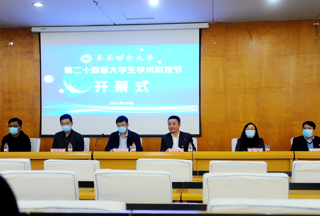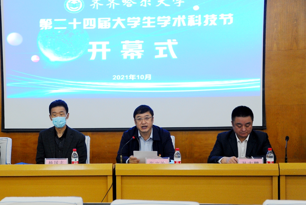 10月29日下午,以“科創(chuàng)青春 強(qiáng)國(guó)有我”為主題的齊齊哈爾大學(xué)第二十四屆大學(xué)生學(xué)術(shù)科技節(jié)開(kāi)幕式在西主學(xué)術(shù)報(bào)告廳舉行。校黨委副書(shū)記、本屆科技節(jié)組委會(huì)主任張文治,各有關(guān)部門(mén)負(fù)責(zé)人出席開(kāi)幕式,各學(xué)院(研究生部)教師和學(xué)生代表在線上觀看了開(kāi)幕式直播。開(kāi)幕式由校團(tuán)委副書(shū)記計(jì)紅主持。