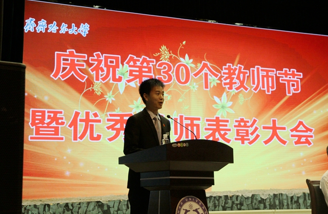 這個教師節(jié),不但是我們歡慶的節(jié)日,更是標志著一段新征程的開始。我們要有大愛之心、敬業(yè)之志、篤學之風、創(chuàng)新之勇、為師之范。我們要更好地履行教師的神圣職責,在齊齊哈爾大學這片沃土上堅守“養(yǎng)正毓德、精存自生”之氣,踐行 “為人、為學、為師”之道,鑄就“大愛、大道、大學”之魂,為建設齊大更加美好的明天而努力工作。衷心祝愿各位老師節(jié)日快樂,理想永恒,事業(yè)長青,祝愿我們的學校明天更美好!祝福我們的學校蒸蒸日上!