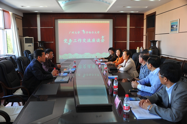 18日上午,廣州大學(xué)與齊齊哈爾大學(xué)黨務(wù)工作交流座談會在中區(qū)行政樓504會議室召開。廣州大學(xué)黨委副書記、紀(jì)委書記張強,廣州大學(xué)美術(shù)與設(shè)計學(xué)院副院長陳其和,我校黨委常務(wù)副書記王鳳琴、紀(jì)委書記張學(xué)軍,校黨委常委、組織部長齊宏偉等出席會議。