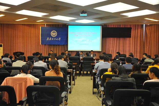 9月19日下午14時30分,我校2014年新輔導員入職宣誓儀式暨輔導員工作培訓會在德潤大廈四樓會議室召開。校黨委常委、常務副校長鄭喜群出席會議。校人事處處長張文治,學生工作處處長姜波、副處長張樹啟,各學院主管學生工作黨委書記、副書記副院長、學生工作處干部和各學院全體輔導員參加了會議。