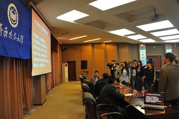 宣誓儀式上,由校學生工作處處長姜波領誓,15名新入職輔導員面對齊齊哈爾大學校旗鄭重宣誓,光榮入職。