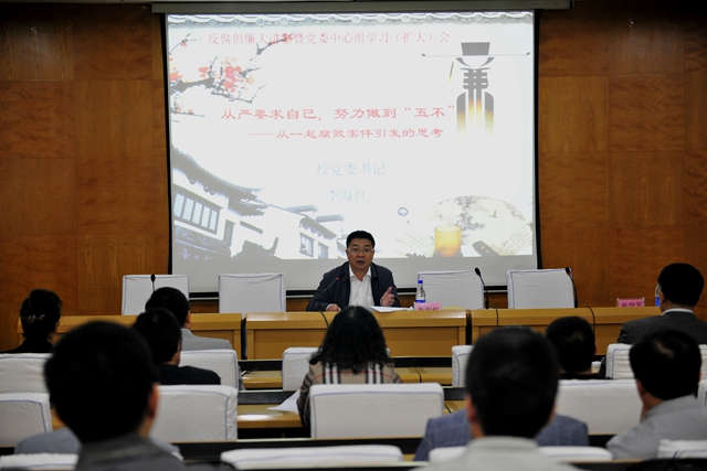 校黨委常委、紀(jì)委書(shū)記張學(xué)軍總結(jié)會(huì)議時(shí)指出,李海紅書(shū)記的報(bào)告內(nèi)涵豐富、深入淺出、令人深思、催人警醒,為我們上了一堂生動(dòng)的廉政教育黨課,對(duì)同志們進(jìn)一步認(rèn)清和明確當(dāng)前反腐倡廉的形勢(shì)和任務(wù),進(jìn)而在行動(dòng)上自覺(jué)提升道德修養(yǎng)、嚴(yán)守黨的紀(jì)律、堅(jiān)守廉政底線會(huì)有很大的教益,希望我校的黨員干部尤其是領(lǐng)導(dǎo)干部要認(rèn)真學(xué)習(xí)報(bào)告精神,始終做到自重、自省、自警、自勵(lì),筑牢思想防線,堅(jiān)守做人為官底線,以求真務(wù)實(shí)的作風(fēng),開(kāi)拓創(chuàng)新,勇于擔(dān)當(dāng),不斷推進(jìn)學(xué)校黨風(fēng)廉政建設(shè)和反腐倡廉各項(xiàng)工作的落實(shí),為學(xué)校高水平大學(xué)建設(shè)做出新貢獻(xiàn)。