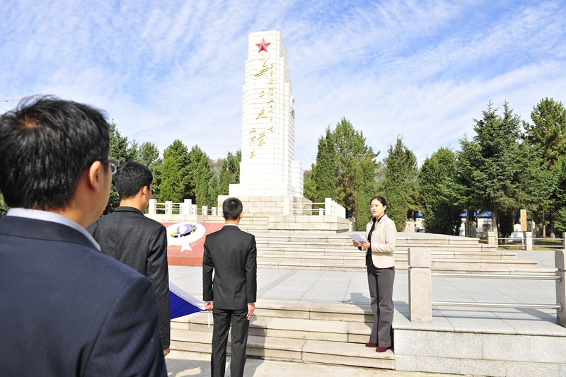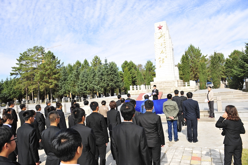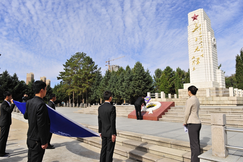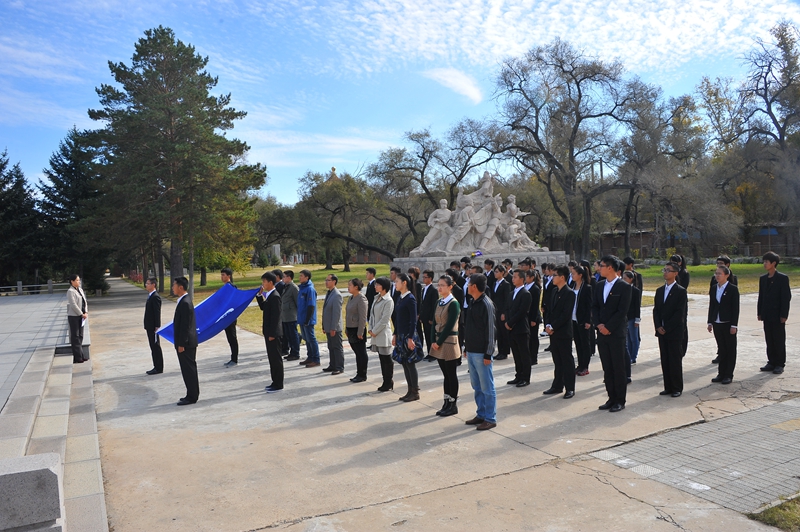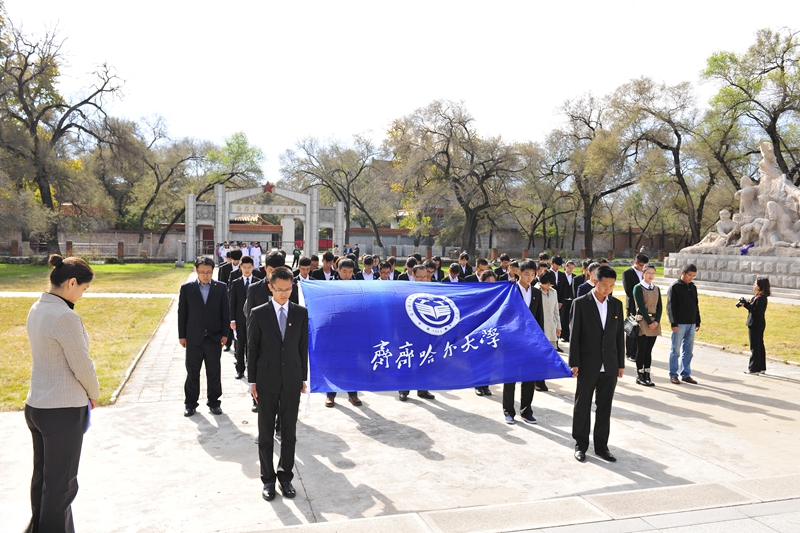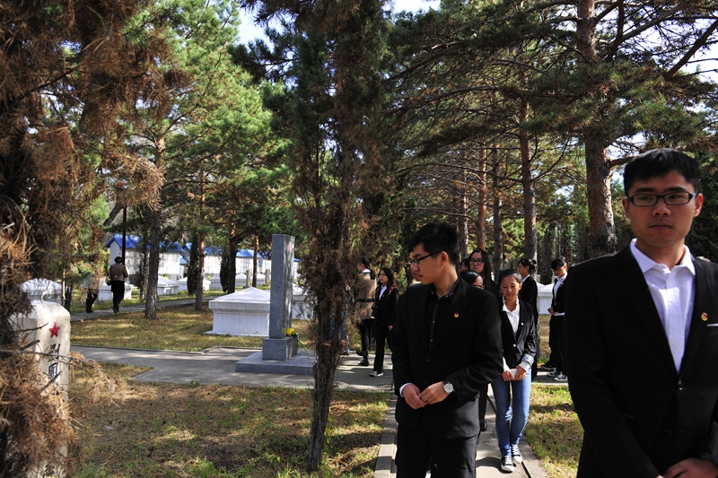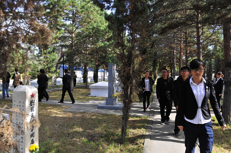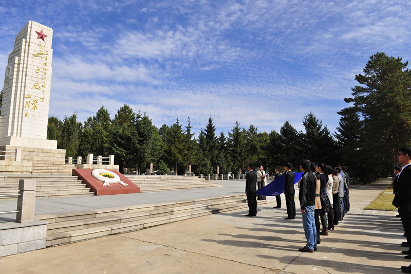 為慶祝建國65周年,緬懷烈士功績,弘揚(yáng)烈士精神,踐行社會(huì)主義核心價(jià)值觀,在第一個(gè)烈士紀(jì)念日到來之際,我校機(jī)關(guān)黨委、校團(tuán)委組織師生代表50人來到西滿革命烈士陵園,深切緬懷革命先烈的豐功偉績,告慰他們的在天之靈。校黨委宣傳部、統(tǒng)戰(zhàn)部副部長孟憲國、文學(xué)與歷史文化學(xué)院副院長肖國棟、校團(tuán)委副書記遲生茂等與青年教師黨員代表、來自各學(xué)生組織的青年學(xué)生代表參加了本次祭掃、獻(xiàn)花活動(dòng)。校團(tuán)委副書記蘇醒主持了祭掃獻(xiàn)花儀式,并宣布:“‘緬懷革命先烈,弘揚(yáng)中國精神’祭掃暨踐行核心價(jià)值觀第四次集體學(xué)習(xí)活動(dòng)正式開始!”