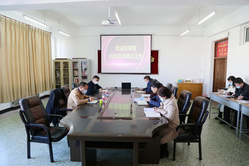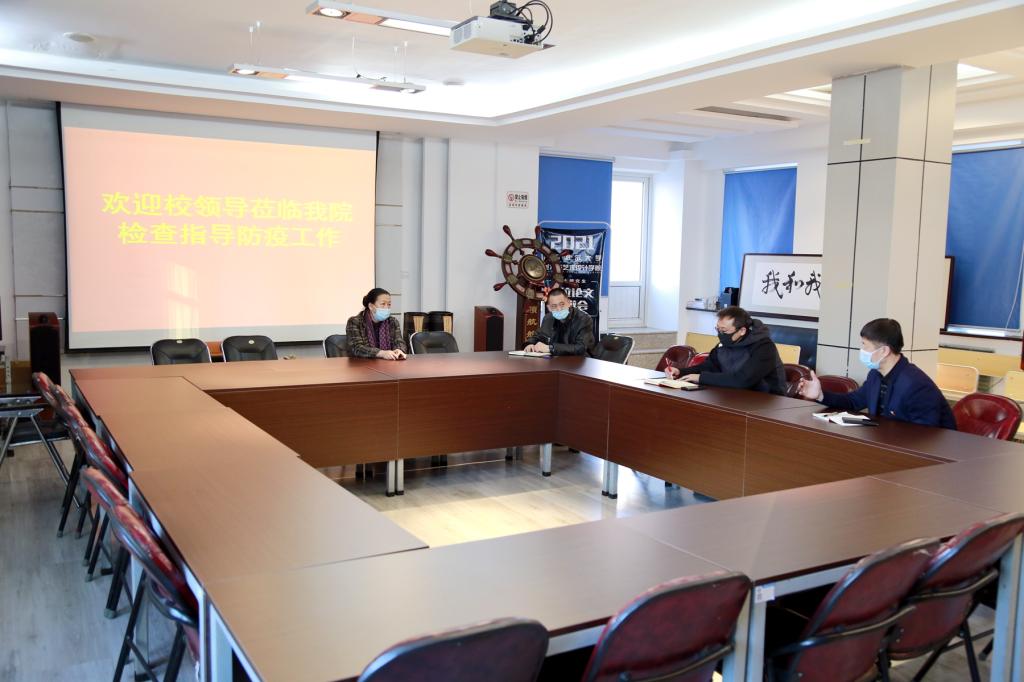 陳桂芝、董玉庭認(rèn)真查看了聯(lián)系學(xué)院疫情防控工作方案、應(yīng)急處置預(yù)案等文件,聽取了學(xué)院主要領(lǐng)導(dǎo)關(guān)于封閉管控、人員管理、軌跡排查、消殺防護(hù)、線上教學(xué)等關(guān)鍵環(huán)節(jié)防控措施落實(shí)情況的匯報,并通過與相關(guān)工作負(fù)責(zé)同志的深入交流,詳細(xì)了解了學(xué)院在防疫管控工作中遇到的重點(diǎn)難點(diǎn)問題,并給出了指導(dǎo)性解決意見。