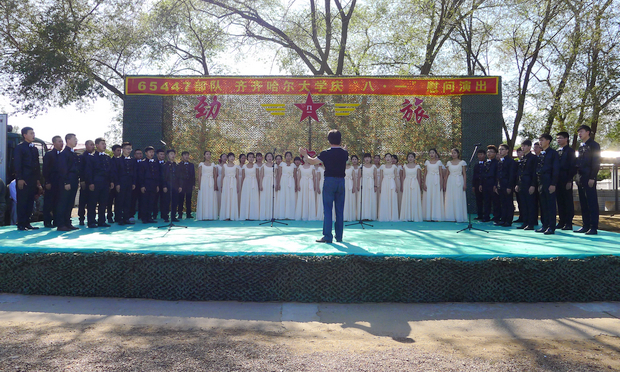 7月31日和8月1日,我校黨委副書記蓋元臣同志及宣傳部、武裝部等部門領(lǐng)導(dǎo)和音樂(lè)與舞蹈學(xué)院領(lǐng)導(dǎo)、師生一行赴駐齊部隊(duì)進(jìn)行慰問(wèn)演出,代表全體師生向子弟兵送去了節(jié)日的問(wèn)候。