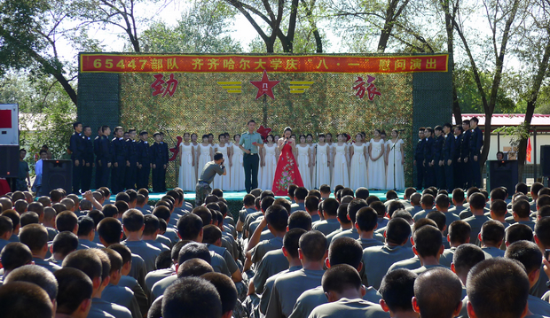 音樂(lè)與舞蹈學(xué)院的師生與部隊(duì)官兵共同進(jìn)行了文藝演出,音樂(lè)與舞蹈學(xué)院的師生先后表演了合唱《草原夜色美》、獨(dú)唱《我的好兄弟》、《軍營(yíng)飛來(lái)一只百靈》、《好男兒就是要當(dāng)兵》等一批特色鮮明的軍旅歌曲,受到部隊(duì)官兵的歡迎,部隊(duì)官兵也一同登臺(tái)表演了精彩的節(jié)目。
