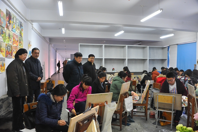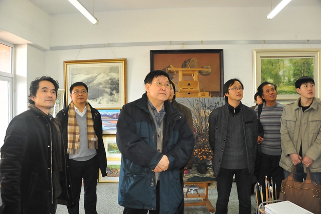 吳團(tuán)良主席一行深入美術(shù)與藝術(shù)設(shè)計學(xué)院教師畫室、美術(shù)教學(xué)課堂、美術(shù)館進(jìn)行調(diào)研,現(xiàn)場對美術(shù)與藝術(shù)設(shè)計學(xué)院教師的藝術(shù)創(chuàng)作、繪畫作品進(jìn)行了具體指導(dǎo)與點(diǎn)評。
