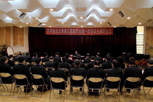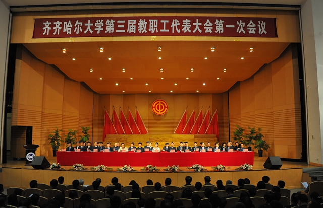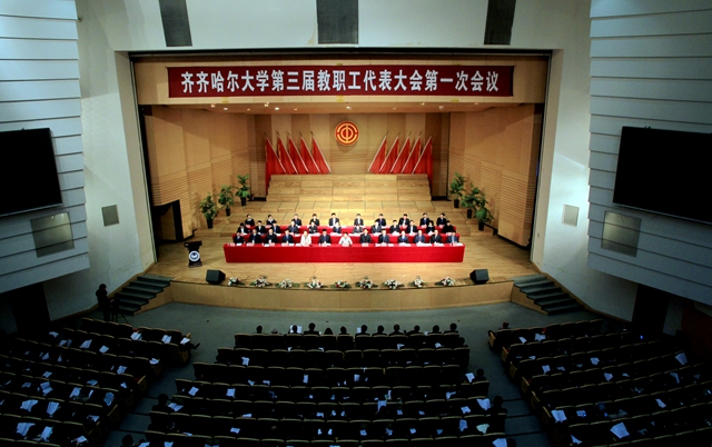 學校教職工代表大會是教職工依法參與學校民主管理和監(jiān)督的基本形式,也是學校凝聚教職工智慧、實現(xiàn)決策科學化、民主化的重要渠道。在全黨深入貫徹黨的十八大、十八屆三中全會精神、習近平總書記系列講話精神,深入開展黨的群眾路線教育實踐活動、全面深化綜合改革的新形勢下,在全校深入開展教育思想大討論,振奮精神、奮發(fā)進取、同心同德加快推進我校高水平大學建設的進程中,在學校黨委的領導下,在學校行政及全校教職員工的關心支持下,齊齊哈爾大學第三屆教職工代表大會第一次會議于4月18日下午在音樂廳隆重開幕。