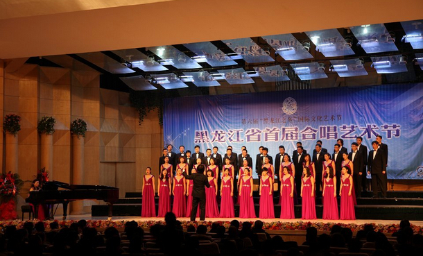 美妙的音樂,感人的歌聲,傳遞著新年的誠摯問候,表達(dá)著人們對(duì)新年新發(fā)展的新夢(mèng)想。2013年12月27日,榮獲過全國教師合唱金獎(jiǎng)的“齊齊哈爾教師合唱團(tuán)”赴哈爾濱參加第六屆“黑龍江之冬”國際文化藝術(shù)節(jié)系列活動(dòng)之一的黑龍江省首屆合唱藝術(shù)節(jié),與哈爾濱民營企業(yè)創(chuàng)辦的頗具代表性的“哈爾濱悅城合唱團(tuán)”聯(lián)合演出。校領(lǐng)導(dǎo)李海紅,張學(xué)軍、李敏義在哈爾濱音樂廳觀看了“齊齊哈爾教師合唱團(tuán)”在黑龍江省首屆合唱藝術(shù)節(jié)的演出盛況。