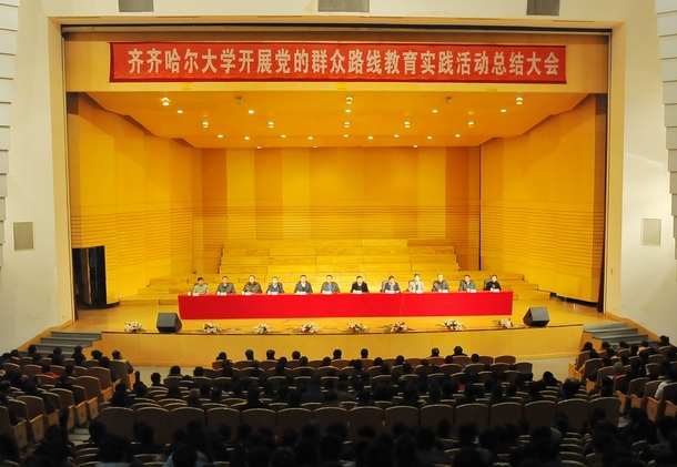 張云志在講話中,對我校教育實踐活動開展情況給予了充分肯定和高度評價。他指出,在這次教育實踐活動過程中,齊齊哈爾大學黨委按照省委要求,把教育實踐活動作為一項重大政治任務,作為黨要管黨、從嚴治黨要求的重大措施,作為破解學校發(fā)展難題的歷史機遇,以高度的政治責任感認真做好每一個環(huán)節(jié)工作,很好地完成和實現(xiàn)了群眾路線教育實踐活動的各項任務和目標。一是教育實踐活動扎實推進,取得了明顯實效。在教育實踐活動中,加強了理論武裝,黨員干部思想認識不斷深化;拿起了批評與自我批評的武器,黨的優(yōu)良傳統(tǒng)得到發(fā)揚;狠抓了專項整治和正風肅紀,“四風”問題得到解決;黨風政風、校風學風不斷優(yōu)化。二是始終堅持高標準、嚴要求,積累了寶貴經(jīng)驗。在教育實踐活動中,堅持領導帶頭,率先垂范;堅持開門搞活動,僅僅依靠師生員工;堅持問題導向,始終聚焦“四風”;堅持整風精神,開展批評與自我批評。