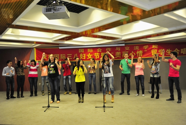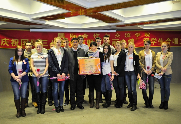 合唱比賽在《真心英雄》豪邁的歌聲中拉開帷幕,來自八個班級的留學生班主任老師與留學生將自己的優(yōu)秀歌曲呈現(xiàn)給來自五個國家180多名的外國留學生們,迎接又一個全世界婦女共同的節(jié)日。風格各異的歌曲使得整場比賽精彩不斷,高潮迭起。E班留學生用中文演唱的《我們走在大路上》,認真的表情,專注的表演,比歌曲本身更讓人感動,獲得比賽第一名;B3班帶來的合唱《梔子花開》更讓人體會到班級和諧向上的溫馨,獲得比賽的第二名;而接下來D班的《我是不是你最疼愛的人》,聲情并茂,贏得現(xiàn)場觀眾的陣陣喝彩,獲在俄羅斯,“三?八”國際婦女節(jié)是全年最重要的節(jié)日之一。我校俄羅斯留學生中的男孩子們在每個節(jié)目結束的時候都會向女教師和留學生女孩子們獻上美麗的鮮花,表達節(jié)日的美好祝福,也為今天的合唱比賽增加了知識性和互動性,反映了我校留學生樂觀向上,健康活潑,不斷進取的良好精神風貌。