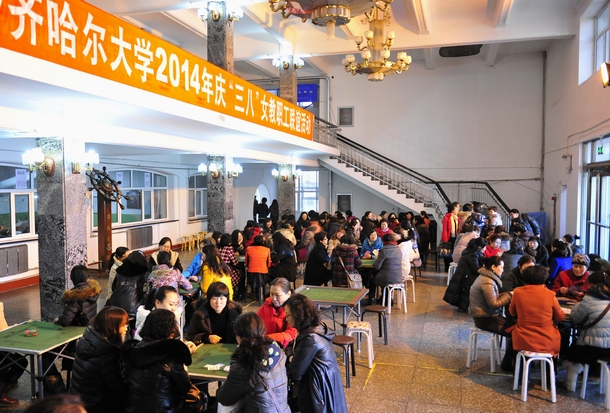 明媚三月,春意盎然。為慶祝第104個(gè)“三八”國際勞動(dòng)?jì)D女節(jié),使全體女教職員工度過一個(gè)歡樂、溫馨的節(jié)日,學(xué)校工會(huì)精心策劃組織,于3月7日下午在校文化宮舉辦了豐富多彩的慶?;顒?dòng)。校領(lǐng)導(dǎo)王鳳琴,鄭喜群、鄧啟剛、李英杰、李敏義,黨委常委、組織部部長齊宏偉與來自各基層工會(huì)的一千余名女教工共同慶?!叭恕眹H勞動(dòng)?jì)D女節(jié),為2014年幸運(yùn)女教工抽獎(jiǎng)、頒獎(jiǎng),并向全校女教職員工致以節(jié)日的問候。