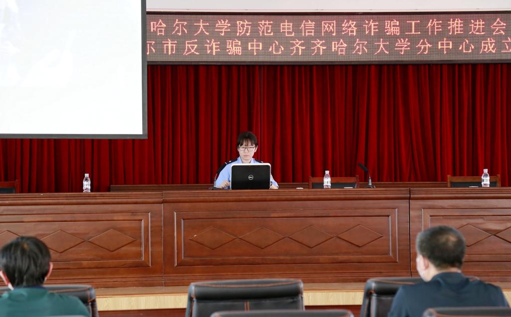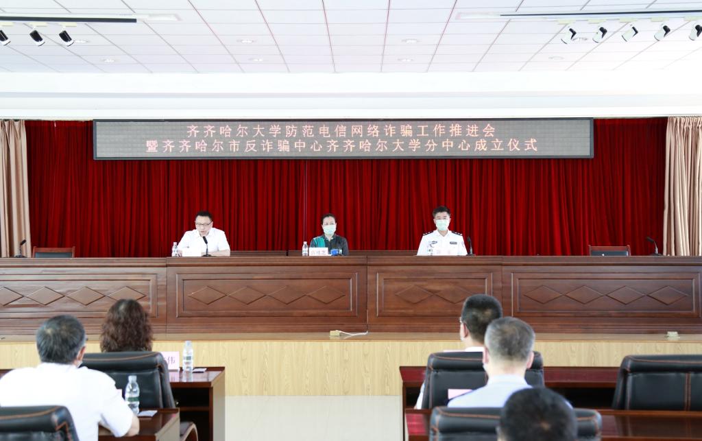 為貫徹落實習近平總書記關于打擊治理電信網絡詐騙犯罪工作的重要指示精神,推進平安校園建設,6月15日下午,學校在求實樓五樓會議室舉行了防范電信網絡詐騙工作推進會暨齊齊哈爾市反詐騙中心齊齊哈爾大學分中心成立儀式。