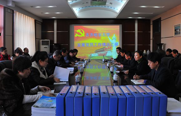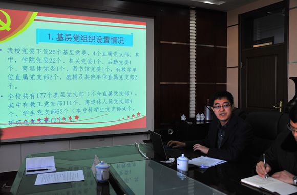 會上,校黨委組織部副部長兼組織員辦公室主任陳志強同志從我校黨員隊伍基本情況、發(fā)展黨員工作的主要做法及今后努力方向等方面,向檢查組作了匯報。