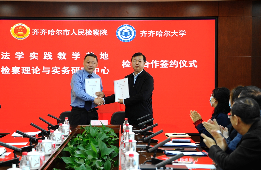 李奇楠代表我校和市檢察院黨組副書記、常務(wù)副檢察長喬海東簽訂了《齊齊哈爾大學(xué) 齊齊哈爾市人民檢察院校檢合作協(xié)議》。