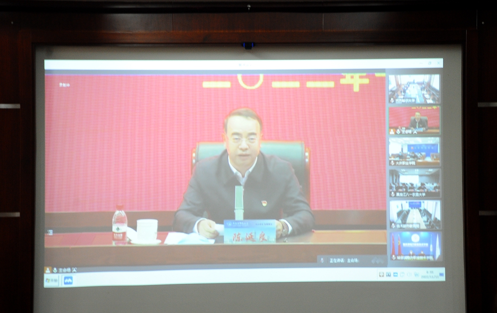 11月11日上午,全省教育系統(tǒng)學(xué)習(xí)貫徹黨的二十大精神宣講動員會暨首場宣講報告會在哈爾濱師范大學(xué)召開。省教育廳黨組書記、廳長,省委教育工委常務(wù)副書記陳延良作首場宣講報告,省教育廳副廳長、省委教育工委副書記解宗軍作宣講動員講話,省委教育工委副書記王震主持會議。我校在辦公樓504會議室設(shè)立分會場,校黨委書記陳桂芝,校長、黨委副書記董玉庭,校黨委副書記齊宏偉以及宣傳部、馬克思主義學(xué)院相關(guān)負責(zé)人,省委教育工委黨的二十大精神宣講團成員在分會場參會。