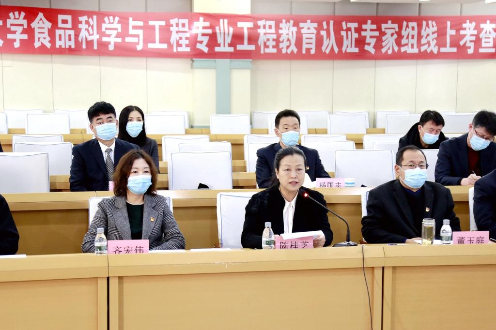 會上,陳桂芝在致辭中代表全體師生員工向各位專家對我校食品科學(xué)與工程專業(yè)進(jìn)行線上工程教育認(rèn)證考查表示熱烈歡迎和衷心感謝,并對學(xué)校的基本情況、食品科學(xué)與工程專業(yè)的發(fā)展情況、我校自2017年3月啟動專業(yè)認(rèn)證工作以來的各項工作舉措進(jìn)行了介紹。她表示,本次工程教育專業(yè)認(rèn)證是我校第三次接受國際工程教育標(biāo)準(zhǔn)下的專家審核,疫情特殊時期,各位專家不辭辛勞,以“云”為媒、以“網(wǎng)”為橋,對我校食品科學(xué)與工程專業(yè)進(jìn)行指導(dǎo)和把脈,對于大力推進(jìn)我校教育教學(xué)改革、全面加強各項教學(xué)建設(shè)、構(gòu)建符合社會經(jīng)濟發(fā)展需要的人才培養(yǎng)框架和知識能力體系、提升專業(yè)人才培養(yǎng)質(zhì)量、提高畢業(yè)生就業(yè)競爭力,具有重要的意義。真誠希望專家組對我校食品科學(xué)與工程專業(yè)的建設(shè)多提寶貴意見和建議,指導(dǎo)我校進(jìn)一步完善人才培養(yǎng)體系,提高學(xué)生培養(yǎng)質(zhì)量。學(xué)校將以嚴(yán)謹(jǐn)求實的工作態(tài)度認(rèn)真配合專家組的線上考查,全力以赴做好各項配合工作,確??疾轫樌M(jìn)行。
