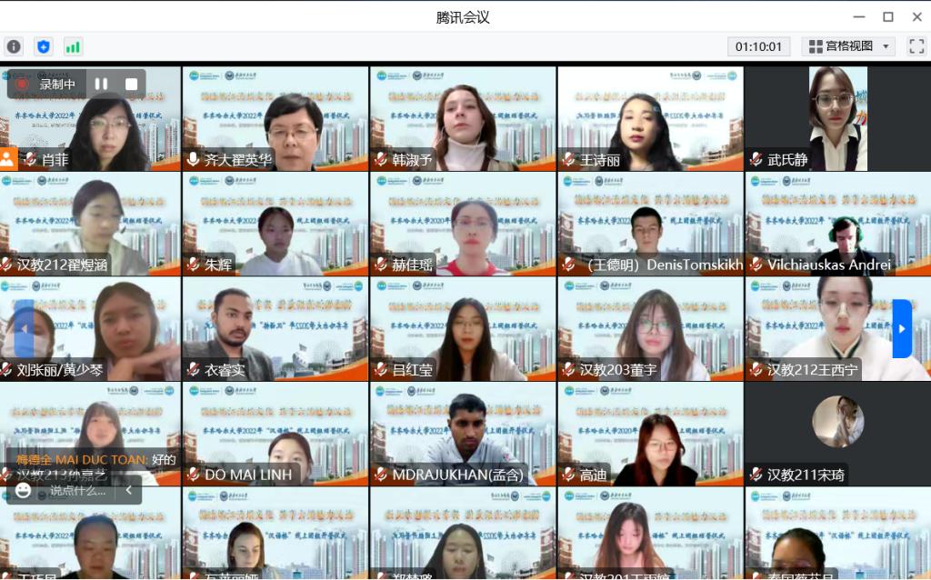 12月9日晚,由教育部語言交流合作中心主辦,我校承辦的“領(lǐng)略嫩江流域文化,共享云端魅力漢語”為主題的“漢語橋”線上團(tuán)組交流項目圓滿結(jié)營。副校長張樹軍、學(xué)校相關(guān)部門及學(xué)院的領(lǐng)導(dǎo)、海外友好學(xué)校代表、授課教師、學(xué)生志愿者、以及來自俄羅斯、泰國、越南、韓國、巴基斯坦、孟加拉國、哈薩克斯坦等國200多營員相聚云端,共同回顧了本次漢語學(xué)習(xí)和文化體驗(yàn)之旅。結(jié)營儀式由國際教育學(xué)院黨委書記胥軍主持。