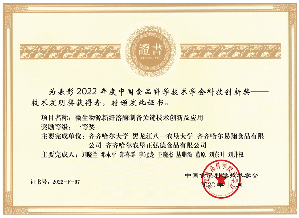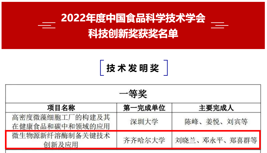 12月14日,中國食品科學技術(shù)學會第十九屆年會隆重舉行頒獎儀式,我校劉曉蘭教授團隊的科技成果“微生物源新纖溶酶制備關鍵技術(shù)創(chuàng)新及應用”獲得科技創(chuàng)新獎技術(shù)發(fā)明獎一等獎,這是我校專家首次獲此殊榮。