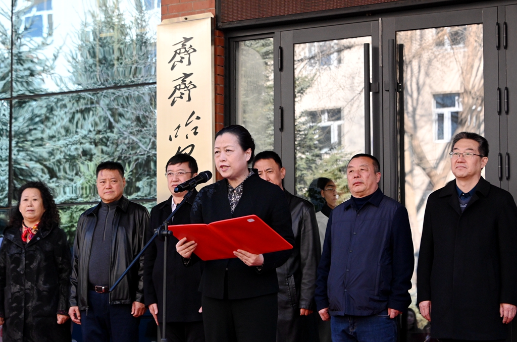 校黨委書記陳桂芝在致辭中首先代表全校師生員工,向塑像捐贈(zèng)人陳國(guó)慶校友對(duì)母校、對(duì)師者感恩之善舉表示衷心地感謝。她指出,為王墨林先生立像,就是深切緬懷以王墨林先生為代表的老一輩齊大先賢的發(fā)展功績(jī),感召和激勵(lì)廣大師生校友傳承齊大精神,續(xù)寫和創(chuàng)造學(xué)校發(fā)展的新篇章。今天的齊大,已經(jīng)發(fā)展成為龍江西部地區(qū)規(guī)模最大、層次最齊、門類最全、經(jīng)濟(jì)社會(huì)契合度最高的省屬綜合性大學(xué)。歷史發(fā)展的接力棒已經(jīng)交到我們這一代齊大人手中,吾輩當(dāng)不負(fù)黨的重托,不負(fù)人民希望,不負(fù)偉大時(shí)代,將齊大夢(mèng)融入中國(guó)夢(mèng),將齊大發(fā)展融入龍江振興、融入強(qiáng)國(guó)建設(shè)、民族復(fù)興之路,用汗水、赤誠(chéng)與榮光把“齊齊哈爾大學(xué)”的名片擦得更美更靚。