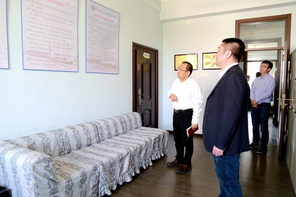 在“制度建設(shè)”分項(xiàng)調(diào)研時,董玉庭認(rèn)真聽取了學(xué)校辦公室主任孫大鵬關(guān)于黨的十八大以來學(xué)校制度建設(shè)整體情況,實(shí)地檢查了保密制度執(zhí)行情況的工作匯報(bào),并針對全校制度建設(shè)整體規(guī)劃、保密室閱文制度專項(xiàng)建設(shè)等工作提出了明確要求。董玉庭強(qiáng)調(diào),面對新時代高等教育發(fā)展新形勢新任務(wù)新要求,我們大學(xué)的制度建設(shè)工作必須與時俱進(jìn)、日臻完善。因此,構(gòu)建中國特色社會主義大學(xué)制度體系,推動辦學(xué)治校各項(xiàng)工作規(guī)范化制度化,既是當(dāng)務(wù)之急,也是長久之策。學(xué)校辦公室要統(tǒng)籌協(xié)調(diào)好全校制度建設(shè)工作,加強(qiáng)對重點(diǎn)領(lǐng)域的制度建設(shè)與執(zhí)行情況的監(jiān)督管理,務(wù)求建章立制與改革發(fā)展相適應(yīng)。全校各部門、各單位要高度重視制度建設(shè)工作,切實(shí)提高制度建設(shè)的針對性、及時性、系統(tǒng)性、協(xié)調(diào)性和可操作性。各級領(lǐng)導(dǎo)干部要以主題教育為契機(jī),深入學(xué)習(xí)貫徹習(xí)近平法治思想,提升運(yùn)用法治思維和制度手段開展工作、推動發(fā)展的本領(lǐng),樹牢遵章守規(guī)意識,讓規(guī)范化制度化成為工作習(xí)慣,為事業(yè)高質(zhì)量發(fā)展提供法治保障。