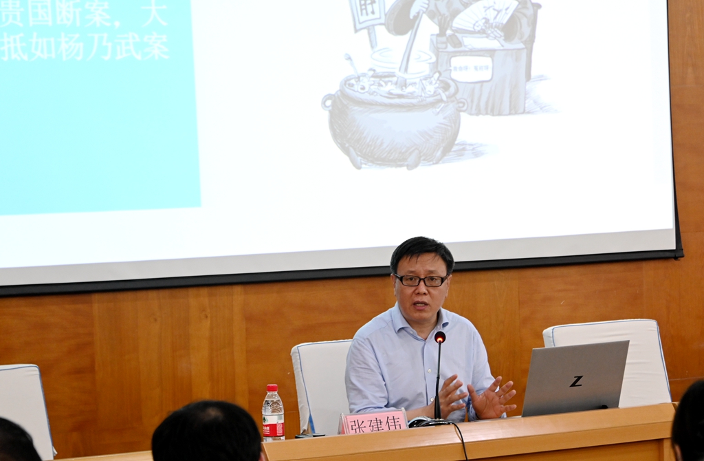 講座開始前,張建偉、董玉庭、哲學(xué)與法學(xué)學(xué)院領(lǐng)導(dǎo)班子成員、法學(xué)專業(yè)教師與及齊齊哈爾鐵路運(yùn)輸檢察院檢察委員會(huì)專職委員張傲冬、馬彥紅等就法學(xué)專業(yè)碩士點(diǎn)申報(bào)的材料準(zhǔn)備情況及公檢法系統(tǒng)對(duì)法學(xué)專業(yè)碩士人才需求情況進(jìn)行了研討交流,張建偉教授從宏觀層面及黑龍江省具體法制人才的需求實(shí)際給予了指導(dǎo)性意見。