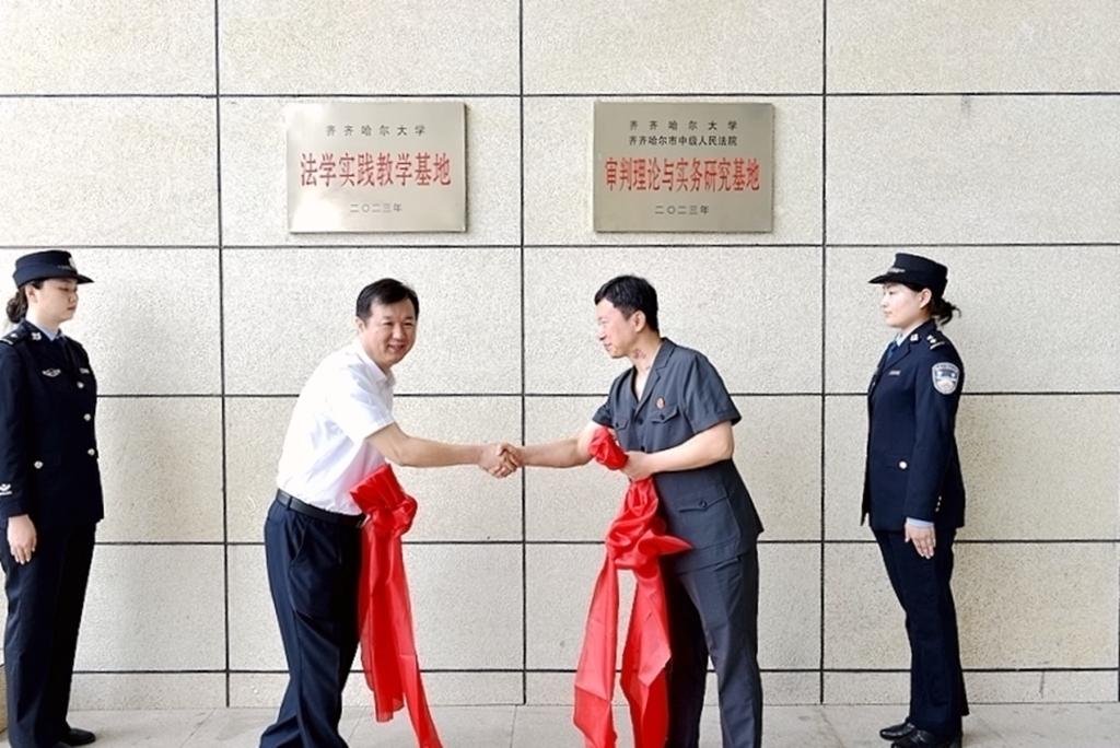 李奇楠和朱衛(wèi)國共同為“齊齊哈爾大學(xué)法學(xué)實踐教學(xué)基地”和“齊齊哈爾大學(xué)審判理論與實務(wù)研究基地”揭牌。