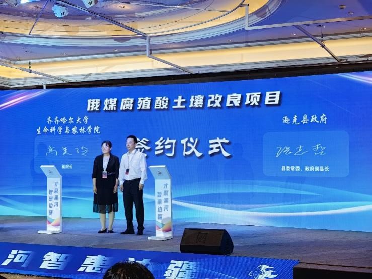 活動(dòng)期間,高美玲教授與遜克縣政府簽訂了《俄煤腐殖酸土壤改良項(xiàng)目》合作協(xié)議。