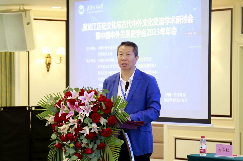 8月26日,由中國中外關(guān)系史學(xué)會、齊齊哈爾大學(xué)主辦,中國社會科學(xué)院古代史研究所古代文化史研究室、齊齊哈爾大學(xué)文學(xué)與歷史文化學(xué)院(新聞傳播學(xué)院)、黑龍江省少數(shù)民族歷史文化遺產(chǎn)保護與傳承研究中心、中國中外關(guān)系史學(xué)會中外文化交流史研究專業(yè)委員會、中國中外關(guān)系史學(xué)會中日關(guān)系史研究專業(yè)委員會、中國中外關(guān)系史學(xué)會絲綢之路研究專業(yè)委員會承辦,昂昂溪區(qū)遺址博物館協(xié)辦的黑龍江歷史文化與古代中外文化交流學(xué)術(shù)研討會暨中國中外關(guān)系史學(xué)會2023年年會在齊齊哈爾和美酒店舉行。