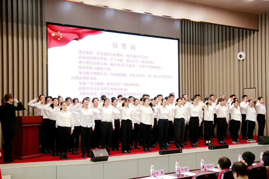 校領(lǐng)導(dǎo)為2023年新教師代表佩戴?;?/span>