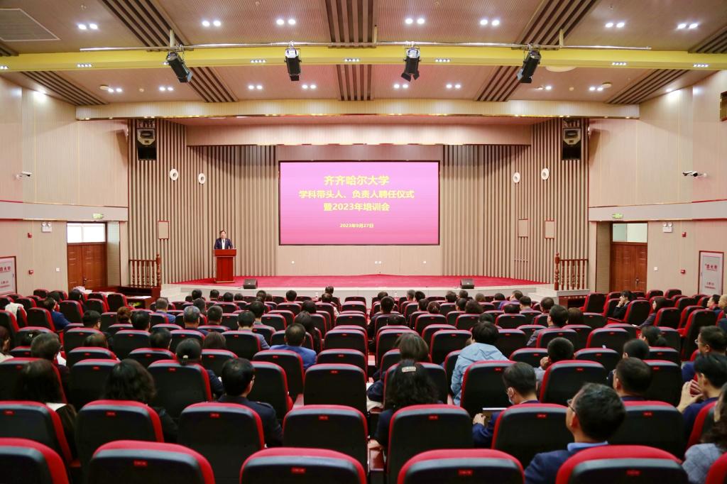聘任儀式后,學(xué)校舉辦了2023年帶頭人、負(fù)責(zé)人培訓(xùn)會(huì)。培訓(xùn)會(huì)首先由重點(diǎn)建設(shè)與發(fā)展規(guī)劃處張德慶處長(zhǎng)介紹了新修訂的《齊齊哈爾大學(xué)學(xué)科帶頭人及負(fù)責(zé)人管理辦法》。隨后,張樹軍副校長(zhǎng)為全體受聘帶頭人、負(fù)責(zé)人做了題為《強(qiáng)化使命擔(dān)當(dāng) 引領(lǐng)高水平大學(xué)建設(shè)高質(zhì)量發(fā)展》的專題輔導(dǎo)講座。
