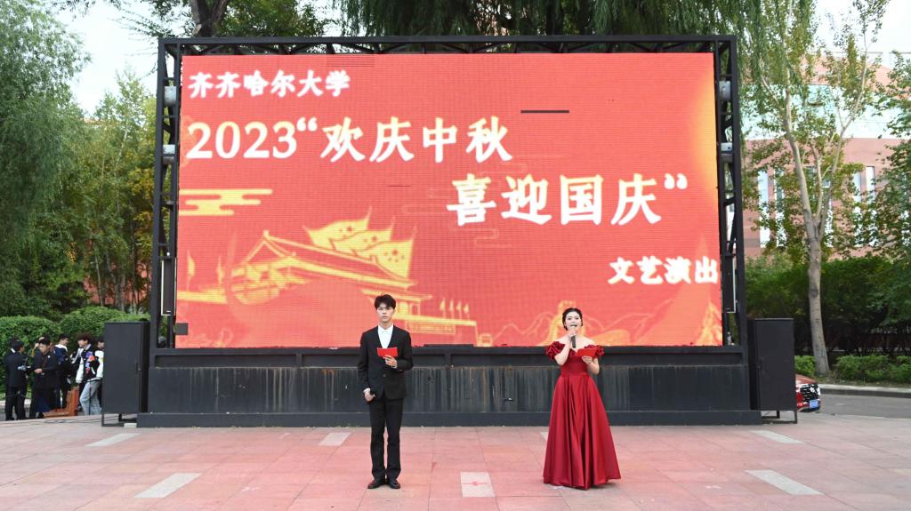 寄相思予明月,同祖國(guó)共風(fēng)華。為大力弘揚(yáng)中華民族優(yōu)秀傳統(tǒng)文化,深化精神文明建設(shè),值此中秋和國(guó)慶雙節(jié)來(lái)臨之際,9月27日下午,學(xué)校2023年“歡度中秋·喜迎國(guó)慶”文藝演出在三致廣場(chǎng)舉辦。黨委副書記齊宏偉,紀(jì)委書記、黨委常委陸占權(quán),黨委常委、宣傳部部長(zhǎng)王曉梅與現(xiàn)場(chǎng)三百余名師生共同欣賞了為“雙節(jié)”獻(xiàn)禮的精彩演出。