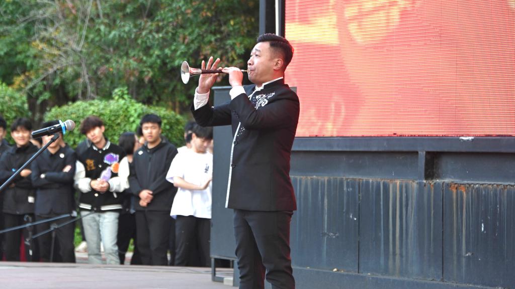 管弦系王超老師表演的嗩吶獨(dú)奏《普天同慶》,用歡快愉悅的節(jié)奏,表達(dá)了人民對(duì)幸福生活的贊美之情。