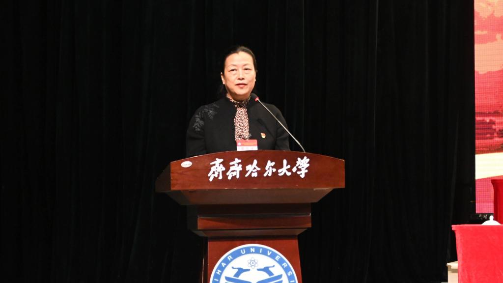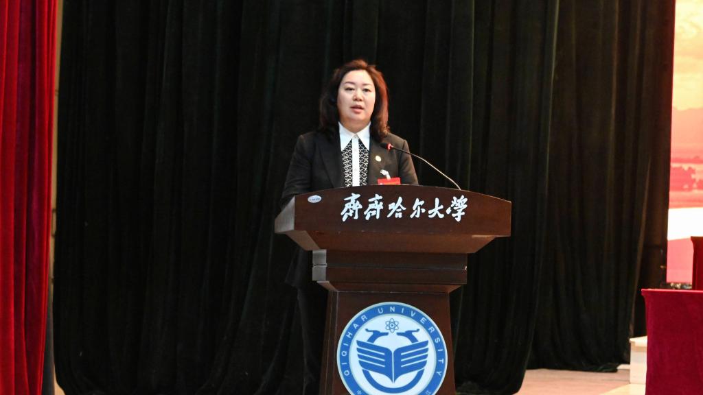 學(xué)校黨委書記陳桂芝代表學(xué)校黨委對(duì)本次大會(huì)的召開表示熱烈祝賀。她在講話中指出,自學(xué)校第五次學(xué)生代表大會(huì)暨第三次研究生代表大會(huì)召開一年來,我校學(xué)生會(huì)和研究生會(huì)堅(jiān)持以習(xí)近平新時(shí)代中國特色社會(huì)主義思想為指導(dǎo),認(rèn)真貫徹落實(shí)學(xué)校黨委和上級(jí)學(xué)聯(lián)工作要求,緊緊圍繞學(xué)校中心工作,服務(wù)大局、服務(wù)師生,團(tuán)結(jié)帶領(lǐng)廣大青年學(xué)生,在深化學(xué)生會(huì)組織改革、促進(jìn)教育教學(xué)、加強(qiáng)校風(fēng)學(xué)風(fēng)、豐富校園文化、助力學(xué)生成長成才等方面做了大量卓有成效的工作,為學(xué)校的建設(shè)和發(fā)展貢獻(xiàn)了青春力量。全校廣大青年學(xué)生要始終牢記習(xí)近平總書記的殷切囑托,堅(jiān)定不移聽黨話、矢志不渝跟黨走,叫響做實(shí)“身在最北方、心向黨中央”的忠誠誓言,心有所向、志存高遠(yuǎn),做有理想的新時(shí)代齊大青年;敢為人先、迎難而上,做敢擔(dān)當(dāng)?shù)男聲r(shí)代齊大青年;百折不撓、剛健有為,做能吃苦的新時(shí)代齊大青年;拼搏進(jìn)取、勇毅前行,做肯奮斗的新時(shí)代齊大青年,以實(shí)際行動(dòng)推進(jìn)我校有特色高水平應(yīng)用型綜合大學(xué)建設(shè)事業(yè),全力服務(wù)黑龍江高質(zhì)量發(fā)展、可持續(xù)振興,在強(qiáng)國建設(shè)、民族復(fù)興新征程上,凝心聚力跟黨走、踔厲奮發(fā)建新功!