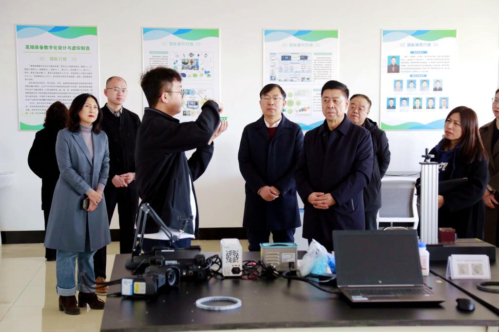 調研組一行深入我校日新大廈“黑龍江省智能制造裝備產業(yè)化協(xié)同創(chuàng)新中心”和“黑龍江省精密制造裝備及工業(yè)感知工程技術研究中心”,機電工程學院院長徐鳳霞詳細介紹了相關科研平臺建設歷程、核心人才梯隊及區(qū)域科研服務成果,吳志東對所在科研團隊服務省4567現(xiàn)代產業(yè)體系、推動“環(huán)齊齊哈爾大學創(chuàng)新創(chuàng)業(yè)生態(tài)圈”建設和雙創(chuàng)特色黨支部的建設與發(fā)展進行了具體介紹。