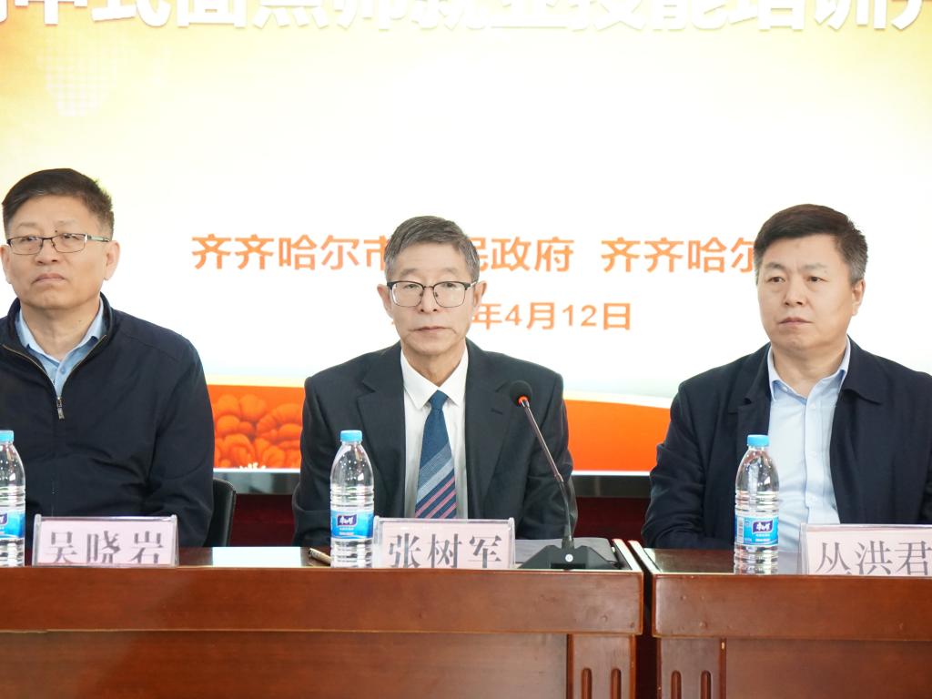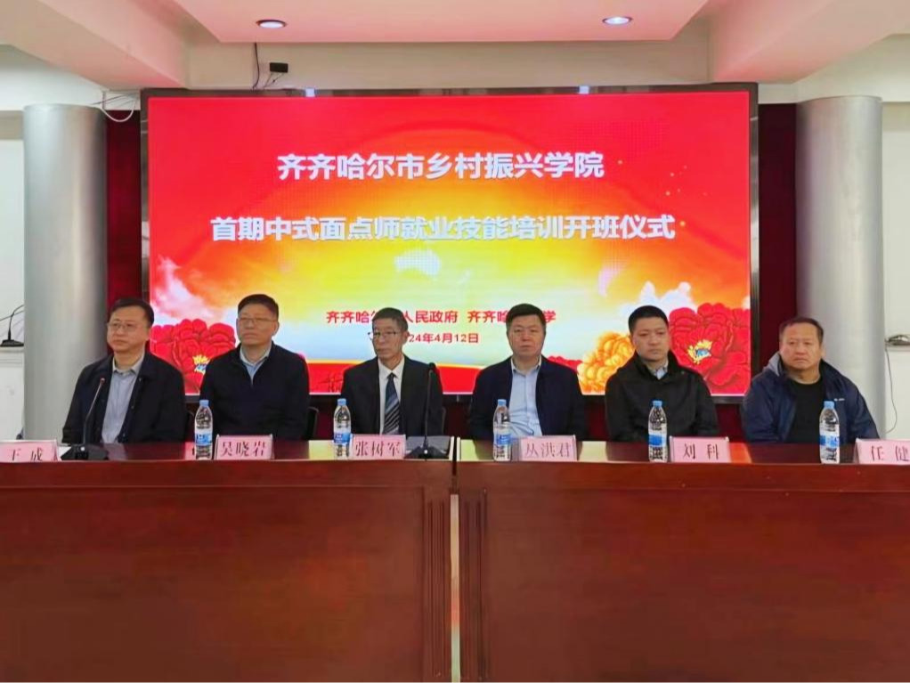 為深入貫徹落實習(xí)近平總書記關(guān)于實施鄉(xiāng)村振興戰(zhàn)略重要講話重要指示精神和黨的二十大關(guān)于全面推進鄉(xiāng)村振興戰(zhàn)略重大決策部署,加快推進實用技能人才培養(yǎng),4月12日上午,齊齊哈爾市鄉(xiāng)村振興學(xué)院首期“中式面點師”就業(yè)技能培訓(xùn)開班儀式在我校培訓(xùn)中心4樓會議室順利舉行。學(xué)校副校長、黨委常委張樹軍,齊齊哈爾市人力資源和社會保障局局長叢洪君出席,齊齊哈爾市以及學(xué)校相關(guān)部門負責(zé)人參加,儀式由繼續(xù)教育學(xué)院院長王成主持。