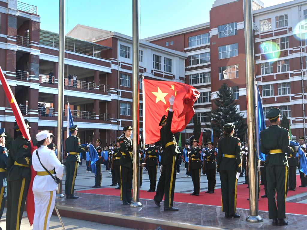 上午7時(shí),升國(guó)旗儀式準(zhǔn)時(shí)開(kāi)始。在莊嚴(yán)肅穆的國(guó)歌聲中,五星紅旗緩緩升起,全體師生整齊劃一,向國(guó)旗行注目禮,表達(dá)了對(duì)偉大祖國(guó)的無(wú)限敬愛(ài)之情。