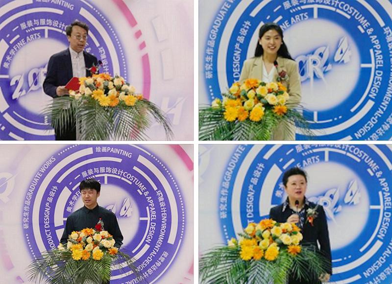 開幕式上,美術(shù)與藝術(shù)設(shè)計學院院長范鐵明代表學院致辭;服裝與服飾設(shè)計專業(yè)湯曉彤老師代表2024屆畢業(yè)設(shè)計指導教師發(fā)言;環(huán)境設(shè)計201班劉騰飛同學代表2024屆全體畢業(yè)生發(fā)表畢業(yè)感言;學校教務(wù)處處長劉省非宣布展覽開幕。
