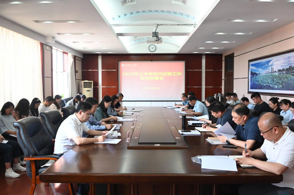 6月25日下午,學(xué)校在辦公樓504會(huì)議室召開2024年上半年校內(nèi)巡察工作動(dòng)員部署會(huì),校領(lǐng)導(dǎo)丁宏、齊宏偉、張文治、叢喜權(quán)、陸占權(quán)出席會(huì)議,校黨委巡察工作領(lǐng)導(dǎo)小組、巡察辦成員以及2024年上半年校內(nèi)巡察4個(gè)巡察組全體成員參加會(huì)議。會(huì)議由校黨委常委、紀(jì)委書記、校黨委巡察工作領(lǐng)導(dǎo)小組副組長陸占權(quán)主持。