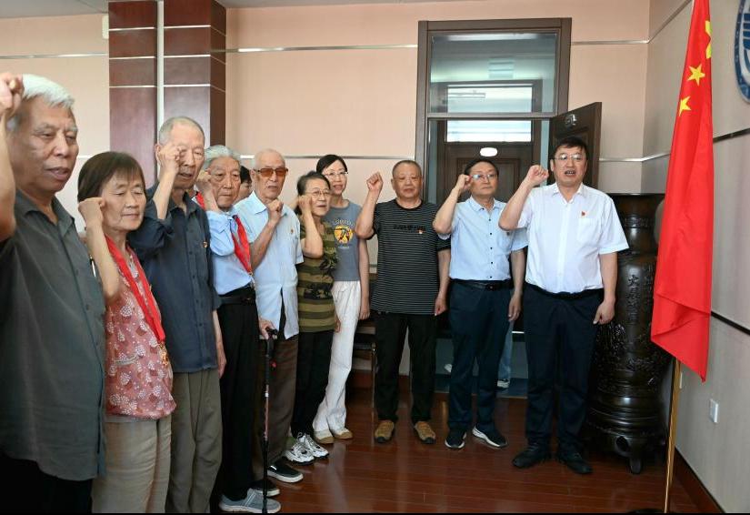 與會(huì)領(lǐng)導(dǎo)為“光榮在黨50年”紀(jì)念章獲得者、離退休黨支部書記代表、退休黨員代表敬獻(xiàn)鮮花,并一起重溫了入黨誓詞。