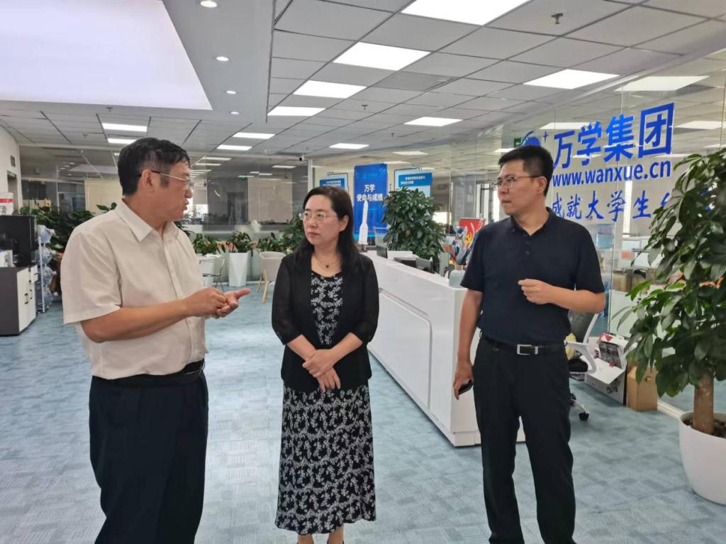 在北京萬學教育科技有限公司,丁宏一行就職業(yè)發(fā)展精細規(guī)劃、核心職業(yè)能力培訓、就業(yè)培訓與深度服務(wù)、創(chuàng)新創(chuàng)業(yè)教育、先進產(chǎn)業(yè)和專精特新人才培養(yǎng)、高校應(yīng)用型轉(zhuǎn)型發(fā)展等方面與副董事長張強進行了深入交流。