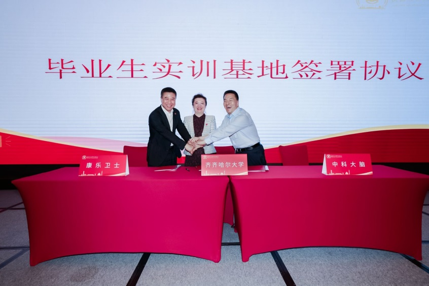 教務(wù)處處長劉省非代表學(xué)校與中關(guān)村科學(xué)城城市大腦股份有限公司、北京康樂衛(wèi)士生物技術(shù)股份有限公司分別簽署畢業(yè)生實訓(xùn)基地協(xié)議。??